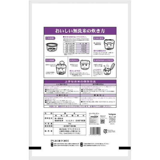 無洗米 秋田県産あきたこまち 5kg×3袋(合計15kg)
