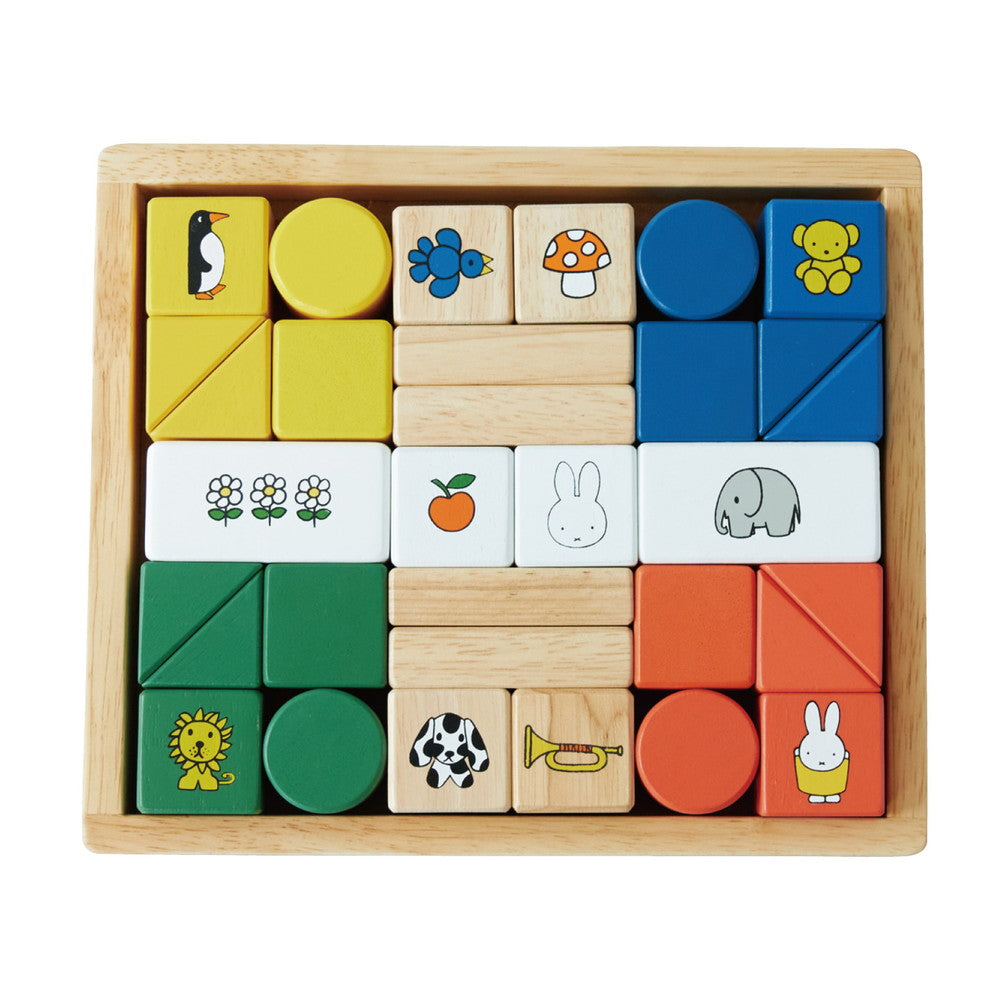 ■色の違いがはっきりしたブルーナカラーに、絵本に登場するイラストがあしらわれたかわいらしいつみきセット。お子さまの小さな手でも扱いやすいデザインです。