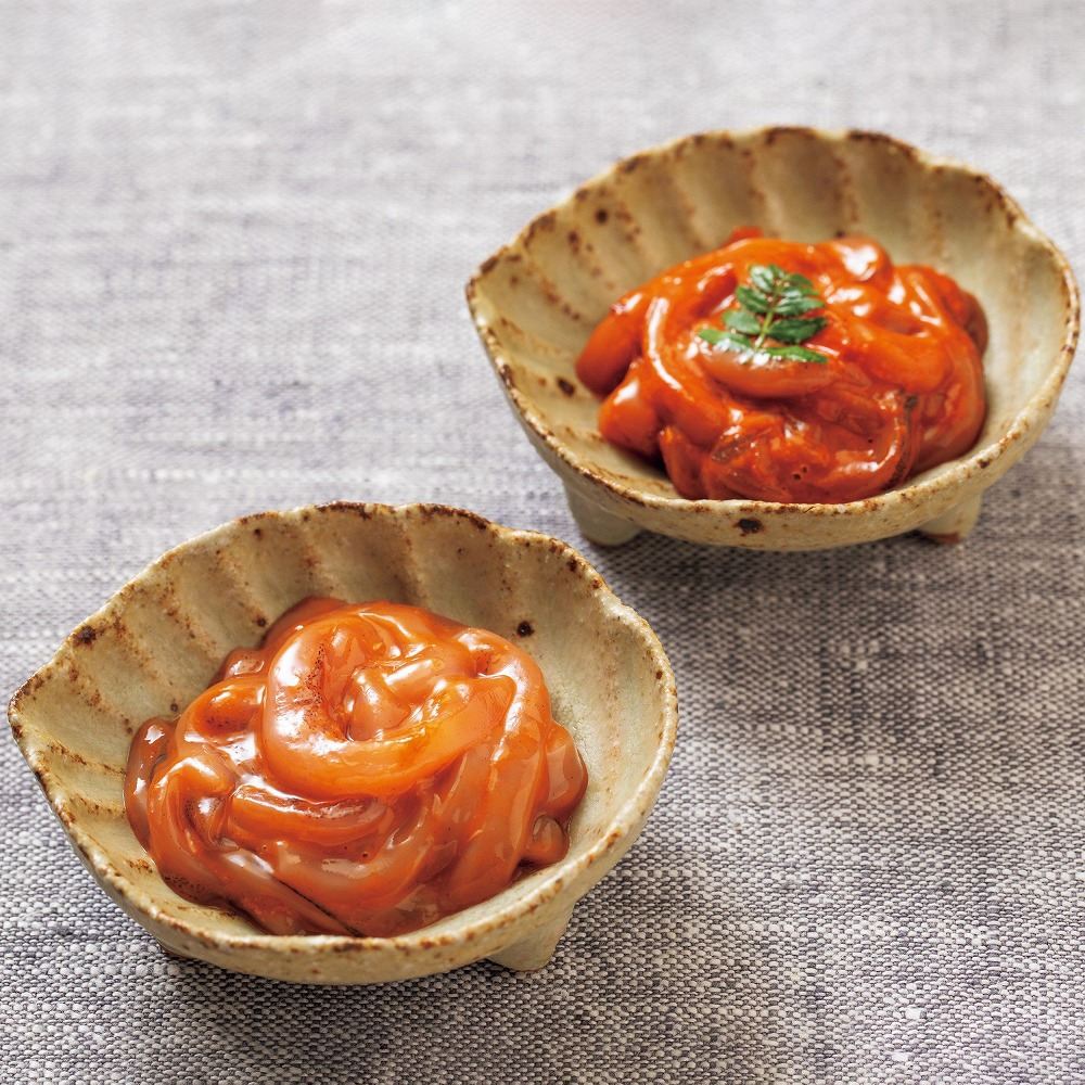 噛むといかの甘みが味わえる「中辛」と、定番の塩辛に唐辛子を加えた旨みのある辛みがクセになる「激辛」。トロリとしながら歯ごたえのあるいかと、2種類の味わいがマッチします。ご飯にのせても、酒の肴にも、お箸がすすむセットです。
