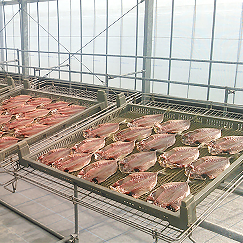 天日と潮風、昔ながらの自然乾燥。柔らかな日差しの中ゆっくりと時間をかけて、唐津湾の潮風に吹かれた干物は、うま味成分を多く含んだ味わい豊かな逸品です。