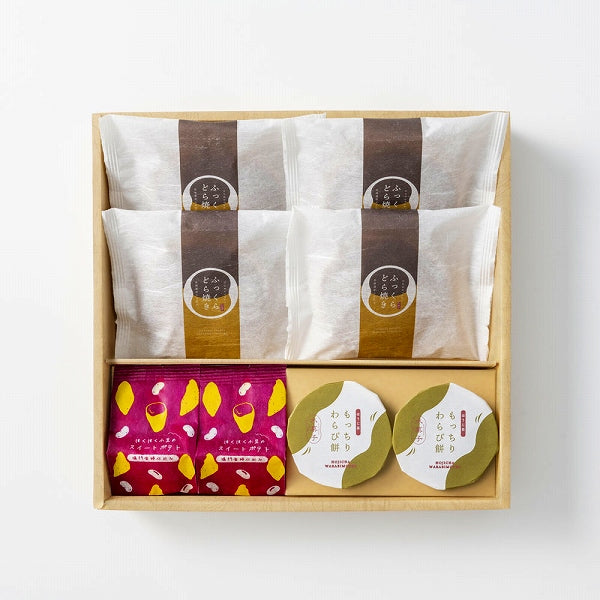 ※賞味期限:常温30日※常温便でお届けします。■希望小売価格:3,564円(税込)■商品内容:ふっくらどら焼き×4個、もっちりわらび餅×2個、ほくほく小豆のスイートポテト×2個 計8個入り※アレルギー:卵,乳,小麦■和菓子に欠かせない小豆、香ばしいほうじ茶、やさしい甘みのさつまいも。日本で愛される素材に新たな息吹を吹き込み、親しみのある甘美菓子に仕上げました。どこか懐かしくも鮮やかな、甘美な時間をお届けします。
