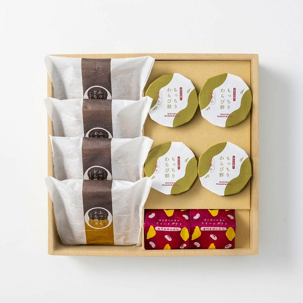 ※賞味期限:常温30日※常温便でお届けします。■希望小売価格:4,104円(税込)■商品内容:ふっくらどら焼き×4個、もっちりわらび餅×4個、ほくほく小豆のスイートポテト×2個 計10個入り※アレルギー:卵,乳,小麦■和菓子に欠かせない小豆、香ばしいほうじ茶、やさしい甘みのさつまいも。日本で愛される素材に新たな息吹を吹き込み、親しみのある甘美菓子に仕上げました。どこか懐かしくも鮮やかな、甘美な時間をお届けします。