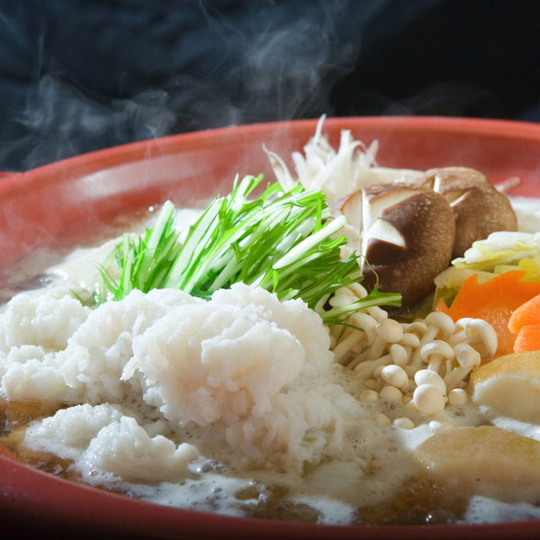■全国でも名高いハモの産地・徳島県。徳島市中央卸売市場の仲卸が営むきらびき工房より、厳選した天然鱧を活〆し仕上げたハモ鍋セットをお届け。焼いたハモの骨などからじっくり取った特製ダシに、丁寧に骨切りされた切身とハモ揚げつくねを入れ、お好みの野菜を足して、本格的なハモ鍋をご家庭でご堪能ください。