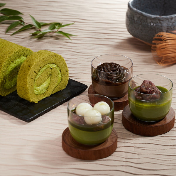 ■上質な石臼挽き宇治抹茶を使用しました。柔らかく仕上げた抹茶のプリンにあんこと白玉をトッピング、添付の抹茶みつをかけて召し上がる宇治抹茶プリンと白玉プリン、焙煎した芳ばしい香りのほうじ茶プリンにほうじ茶のあんこをトッピングし黒みつをかけて召し上がるほうじ茶プリン。3つの風味の和風プリンと、上質な宇治抹茶を生地にクリームにもたっぷりと使用したロールケーキなど、京都・東山茶寮人気商品4種を詰め合わせました。