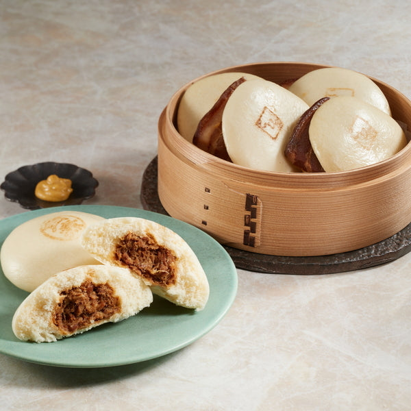■皮付きの豚バラ三枚肉を使用し、自慢のタレでじっくりと煮込んだ角煮をふっくら生地で包んだ「角煮まん」と、その角煮を刻んで玉ねぎと合わせあっさり仕上げた「角煮そぼろまん」の詰合せです。