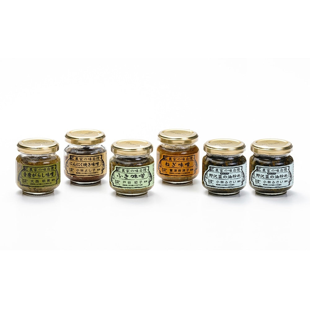 農家では食が進まない時や健康維持のために食す受け継がれた味があります。そのなかでも「我が家の味逸品コンクール」で入賞したものをひとつひとつ商品化しました。提案者の名前は偽りのない証えす。あたたかいごはんやおつまみとして、また調味料代わりにもご使用いただけます。