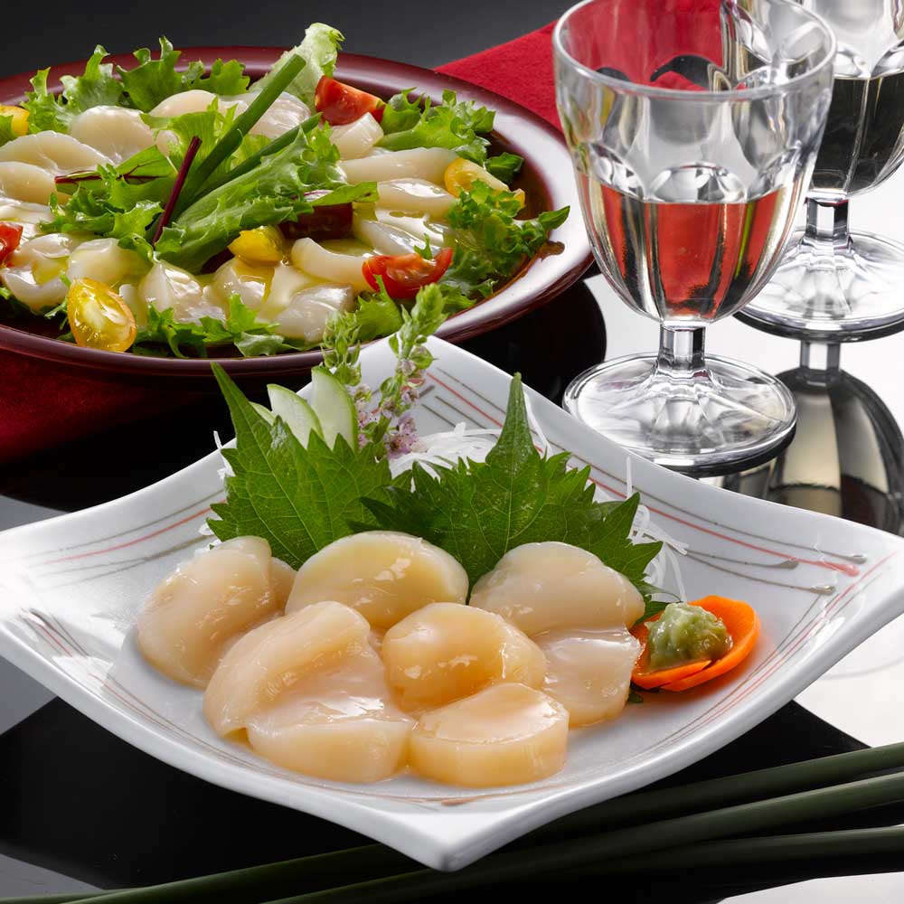 旨みが凝縮されたプリプリの貝柱は刺身はもちろん、カルパッチョ・バター焼き・天ぷら・フライなど、いろいろな料理でもお楽しみいただけます。