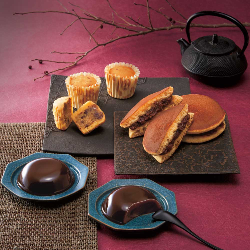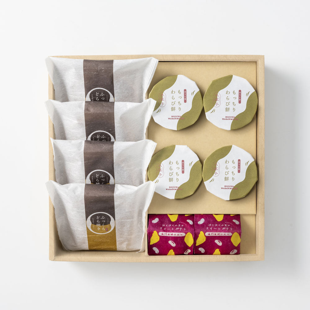 ■商品内容:ふっくらどら焼き×4個、もっちりわらび餅×4個、ほくほく小豆のスイートポテト×2個 計10個入り