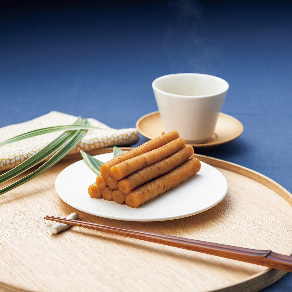 ■角の無いまろやかな黒酢と早採りの筋の少ない若ごぼうの相性が良いお漬物です。