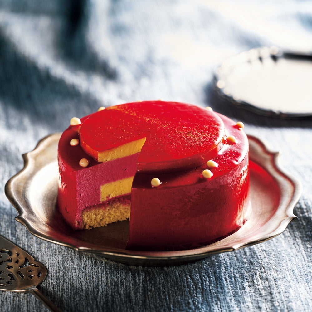 ■こだわりの奥久慈卵を使ってふんわりと焼きあげたスポンジ生地にフランボワーズのさっぱりとしたムース、マダガスカル産の濃厚なバニラを使ったバニラクリームを合わせました。それぞれの味の調和をお楽しみください。