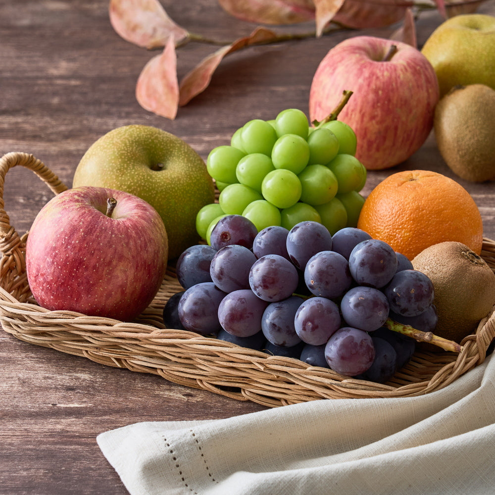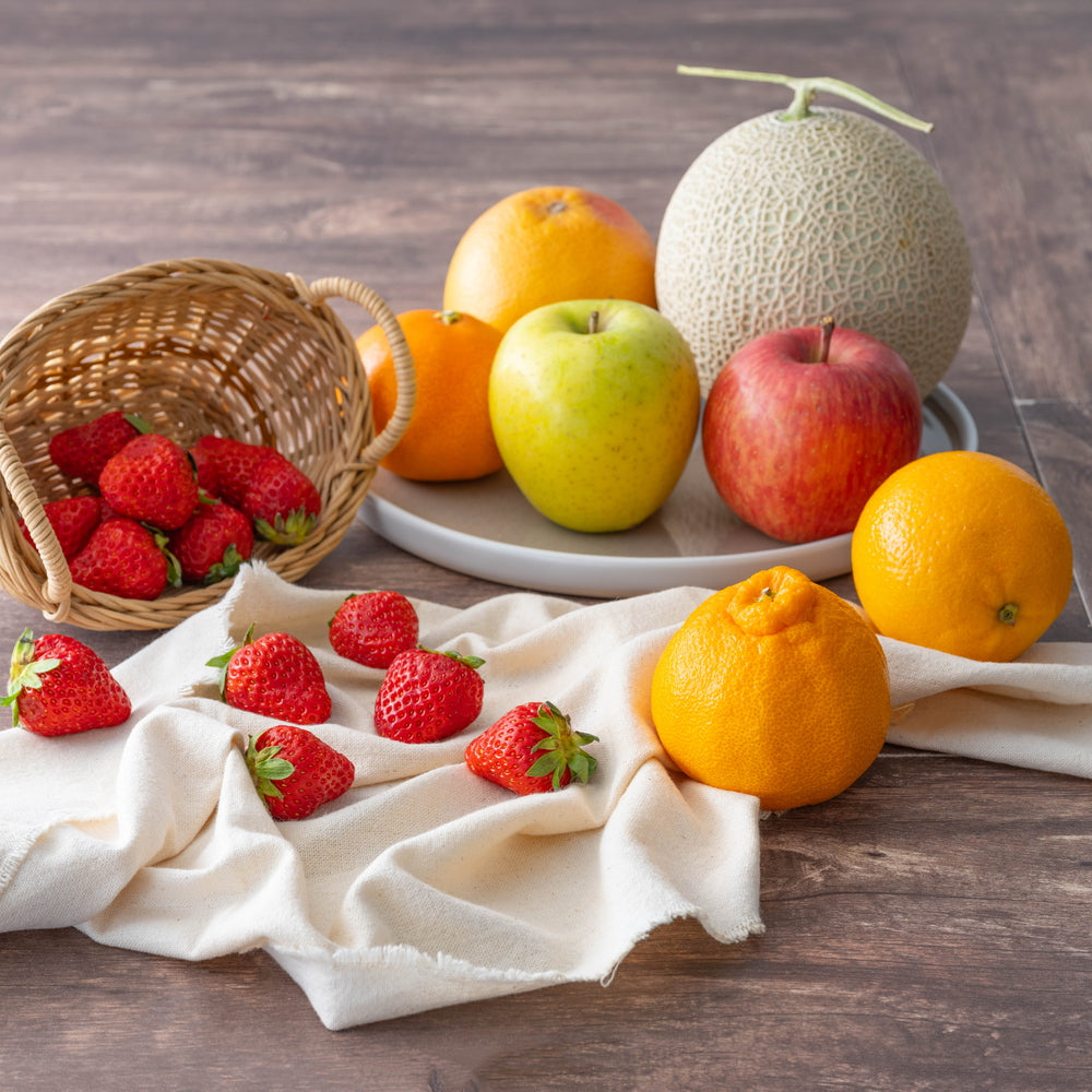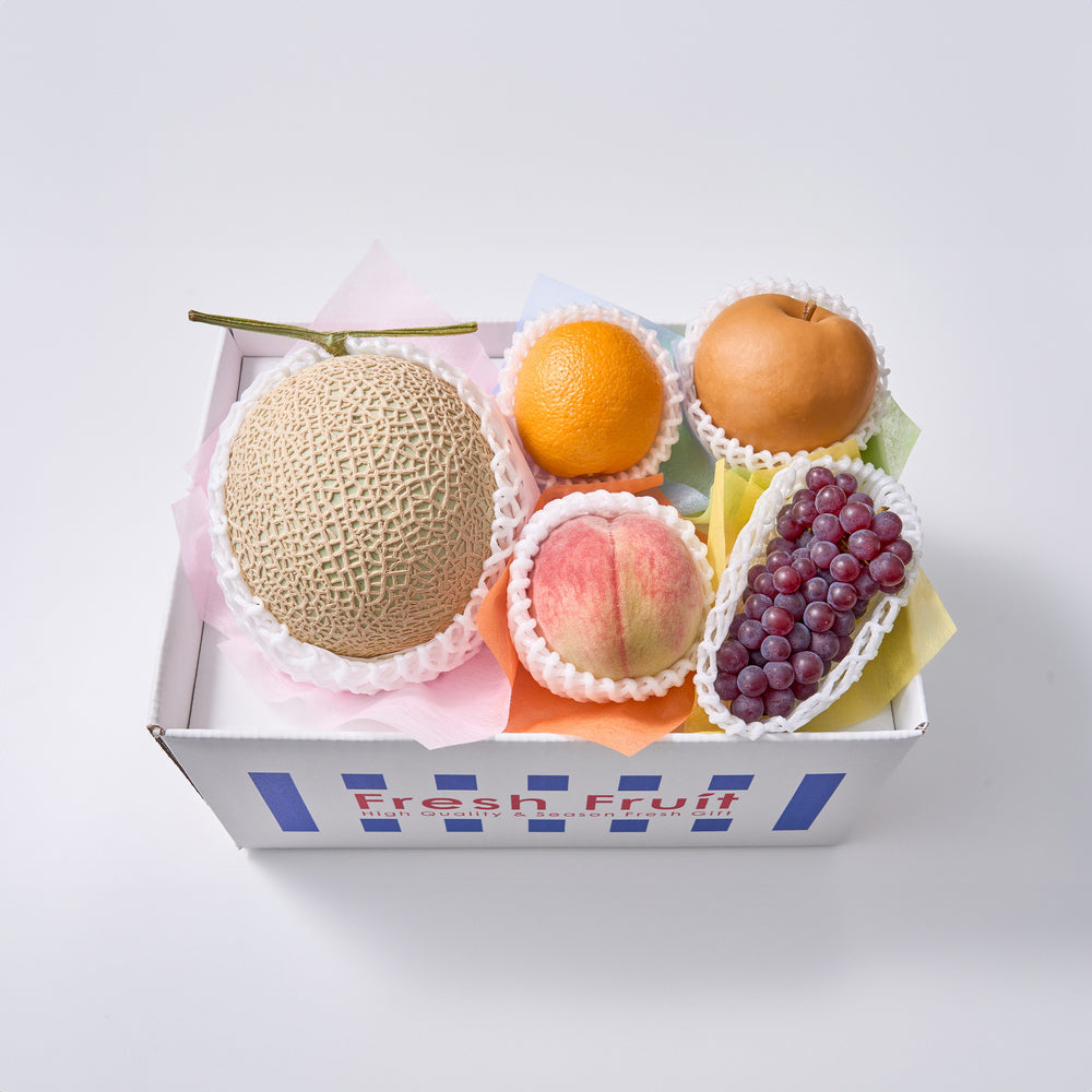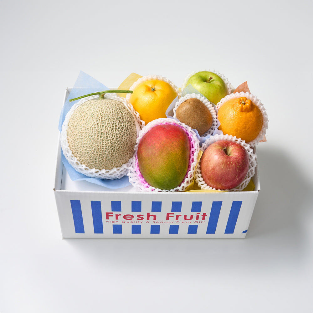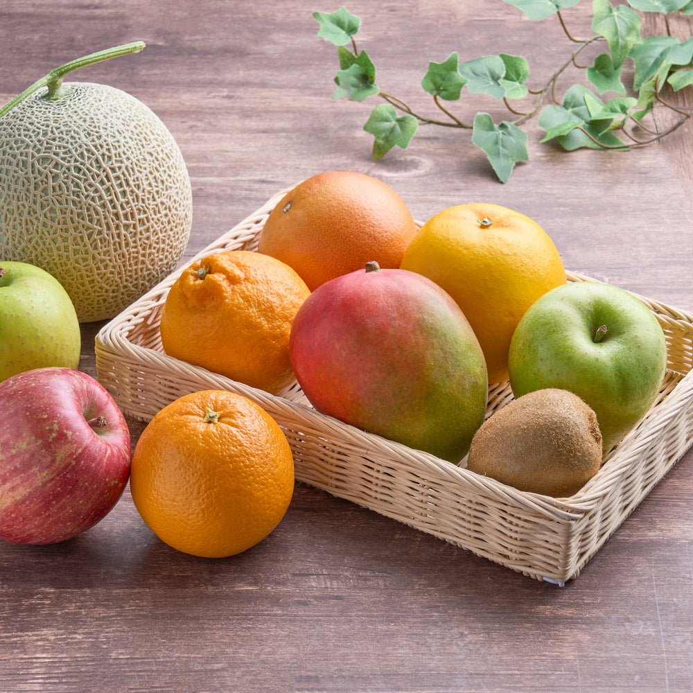 ■創業1988年のフルーツギフト専門店・フルーツワールドが厳選。旬のフルーツと定番フルーツを詰合せてお届けします。何が届くか、その楽しみも詰合せて。