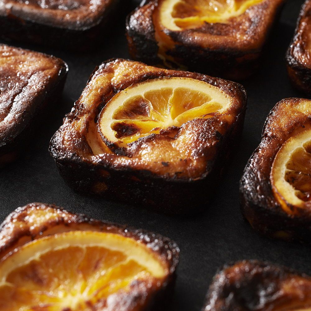 濃厚チーズ×オレンジ×カラメル風に香ばしく焼き上げた表面は濃厚なチーズのしっとり感、カラメルのほろ苦さでするりと溶け合って融合し、オレンジの酸味と優しい香りでさっぱりした後味という最高なコンビネーションを体感できる味香るバスクチーズケーキです。