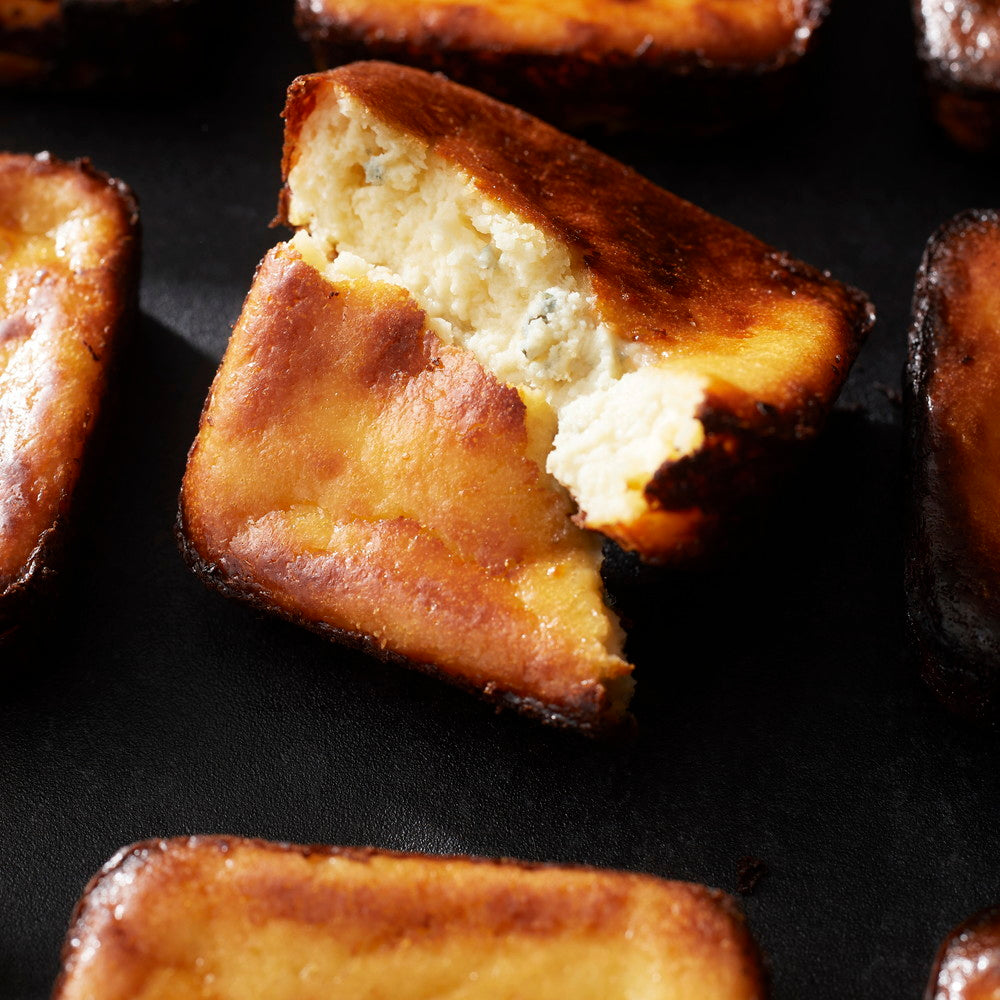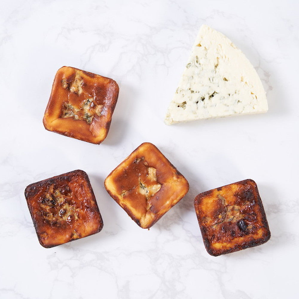 ベイクドチーズケーキの甘味とブルーチーズのシャープな辛みとしっかりと焼き込まれたカラメリゼの香ばしさがチーズ本来の旨味を引き立てます。
