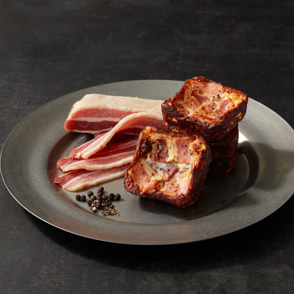 濃厚なクリームチーズ生地にパンチェッタとブラックペッパーをたっぷり。