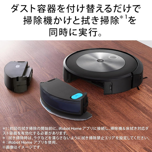 掃除機&床拭き対応ダスト容器を装着するだけで、ロボットが自動的に掃除機がけ&拭き掃除に対応。床の汚れに合わせて、清掃方法を自由に選べます。ゴミを吸引しながら水拭きを行い、ゴミ、足跡、ホコリを一掃。拭き掃除禁止エリアを設定*すれば、ロボットはラグやカーペットを避けて掃除します。iRobotならではの画期的なアイデアで、1台で掃除機がけ&拭き掃除に対応できるよう進化しました。 *:拭き掃除時は、ラグなどを濡らさないように拭き掃除禁止エリアを設定してください。*:iRobot Home アプリを使用。iRobot Home アプリを使用するには、ロボットがWi-Fiネットワークに接続している必要があります。アプリの最新の対応端末や要件はAppStoreまたはGoogle Playからご確認ください。