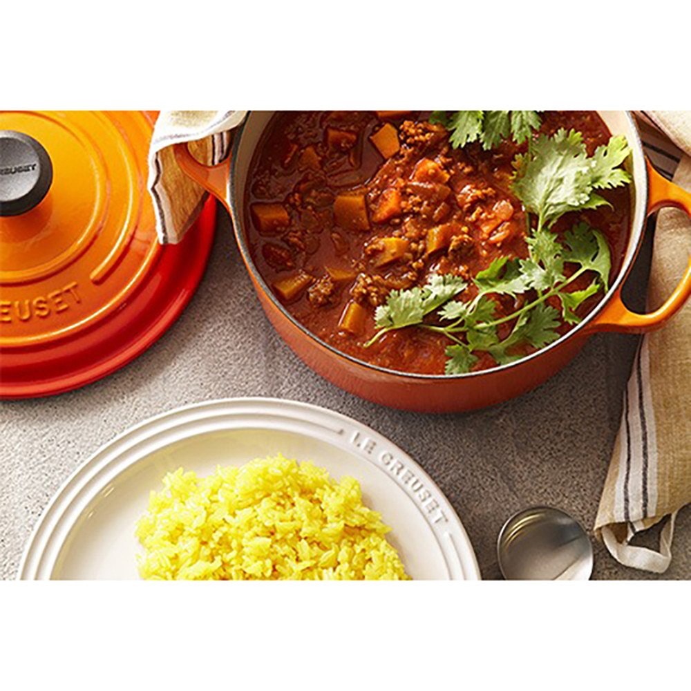 「ココット・ロンド」はル・クルーゼを代表する鋳物ホーロー鍋。煮る、炊く、蒸す、焼く、炒める、揚げる、さまざまな調理法が1つで出来る万能なお鍋です。ガス・直火、IHクッキングヒーター、ハロゲンヒーターはもちろん、オーブンにも対応しています。