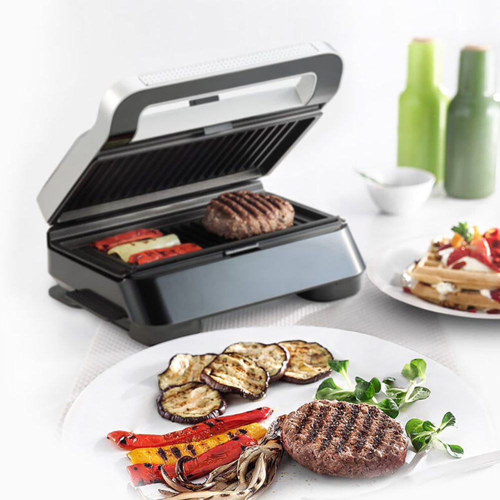 ■ホットサンド/グリル/ワッフルのプレートで、お気に入りの料理をいつでも手軽にお楽しみいただけます。メニューに合わせたプレートを選んでボタンを押すだけ、あとは挟んで調理はお任せ。簡単に、美味しく時短調理ができます。グリル調理時に余分な脂を落とすトレイや、不使用時に便利な縦置き収納、さらにプレートは食洗機対応と、毎日の使い勝手も考えられたデザインです。