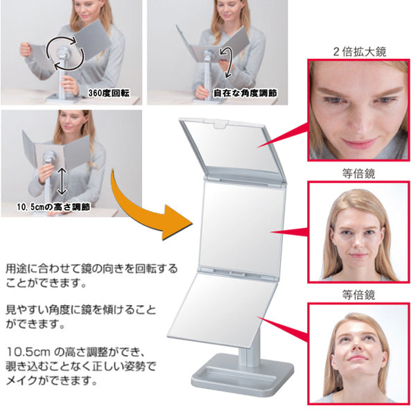 ■便利機能が満載の使いやすさ!特許取得の本当の色を映す!最強の三面鏡!毎日のメイクが変わる!