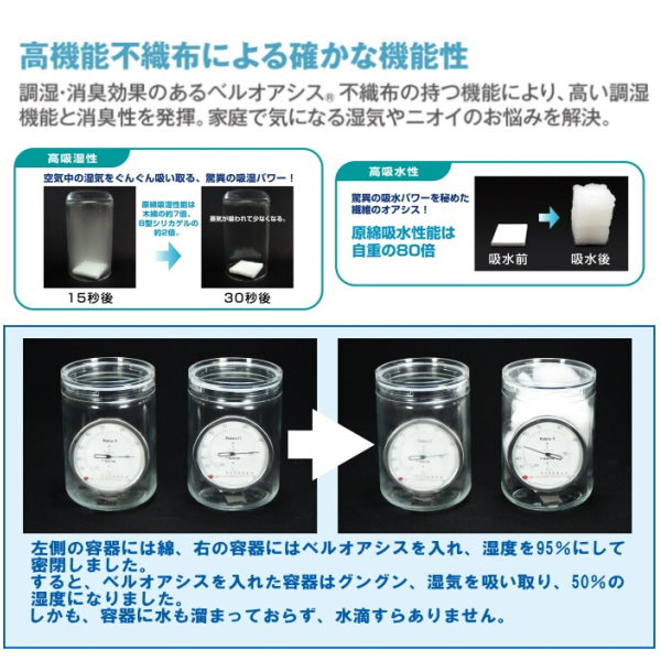 ベルオアシスは周囲の湿度環境に合わせて、吸湿したり放湿したりする素材です。