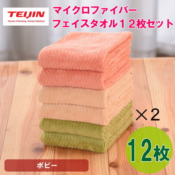 ■商品内容:テイジン 帝人 マイクロファイバー フェイスタオル(3カラー/各4枚)【計12枚/ポピー】
