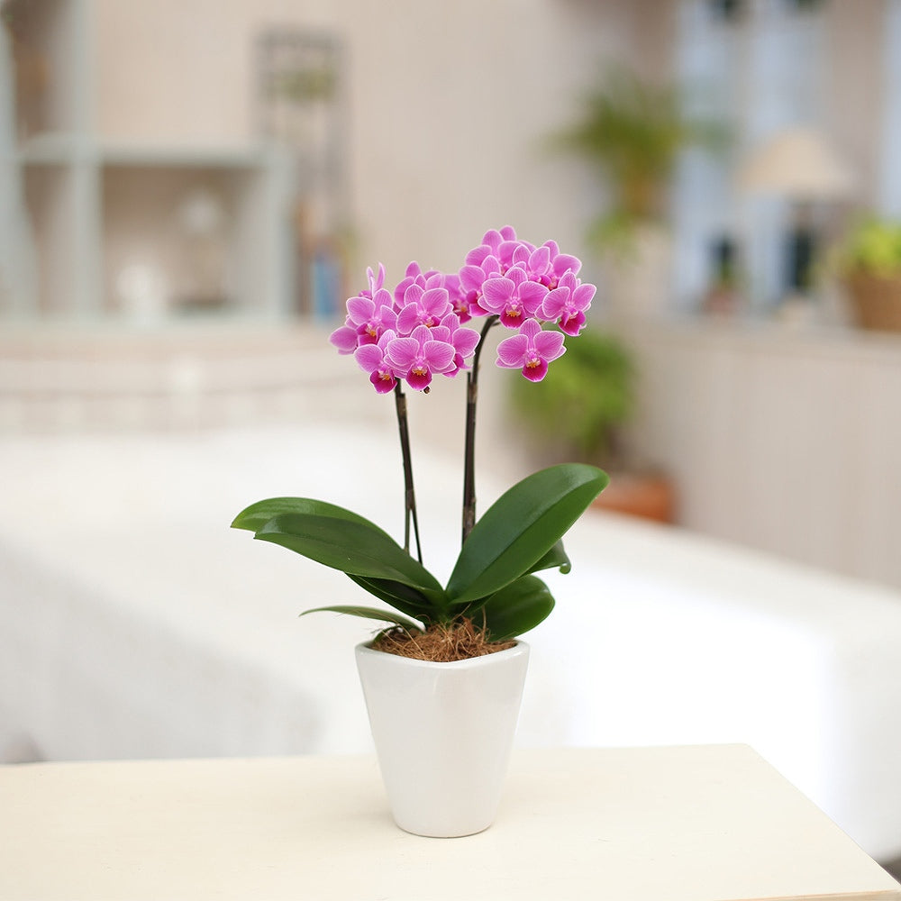 ■商品内容:テーブル胡蝶蘭(3号鉢2本立ち 濃ピンク)
