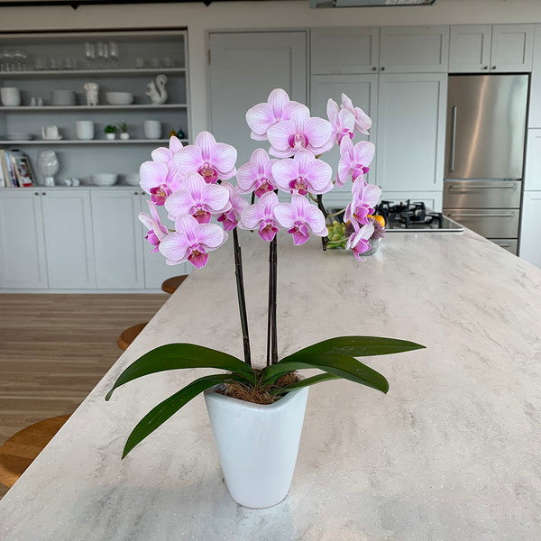 ■商品内容:テーブル胡蝶蘭(3号鉢2本立ち 淡ピンク)
