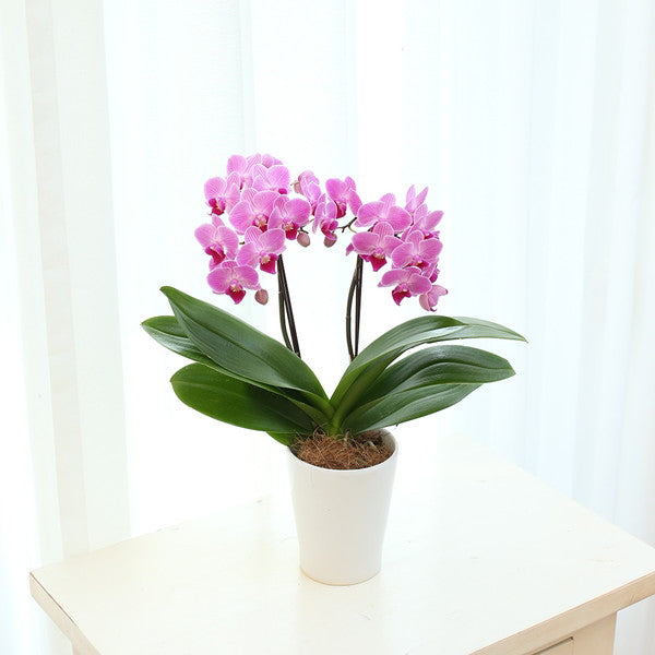 ■商品内容:ミディ胡蝶蘭(4号鉢ラージサイズ2本立ち 濃ピンク)