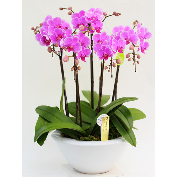 ■商品内容:ミディ胡蝶蘭白平鉢(8号鉢5本立ち ピンク系)