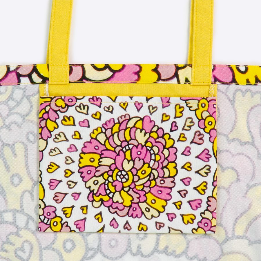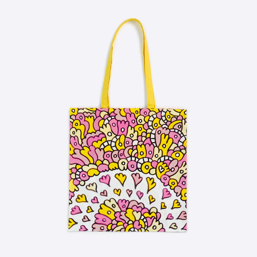 アーティストの個性あふれる作品と一緒にお出かけできるアートなサブバッグ。ボリュームのあるアウターでも肩に掛けやすいハンドル長めのデザインで、通勤通学、お出かけ、エコバッグといろいろなシーンで使えます。