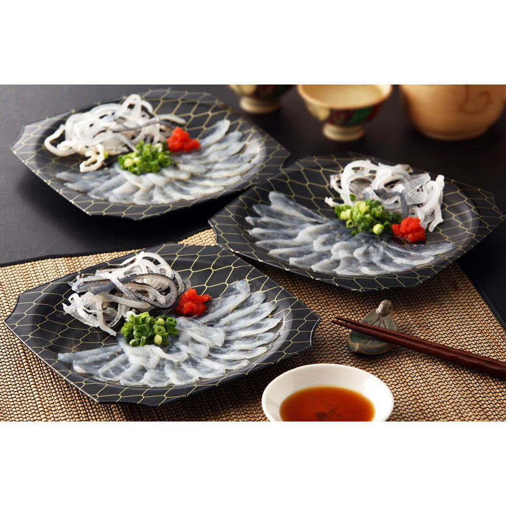 ■内容量:(とらふぐ刺身25g、とらふぐ皮10g、ポン酢10g、もみじおろし2g、ねぎ)×3皿