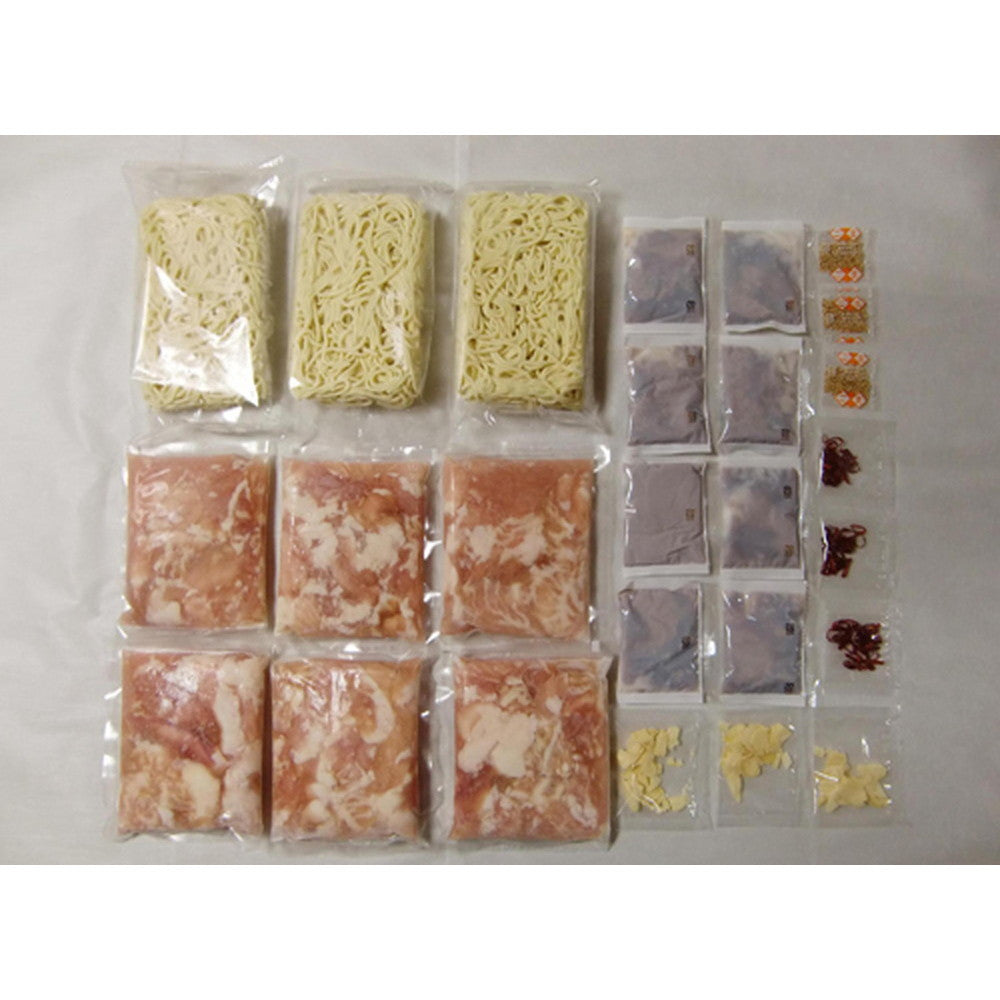 ■内容量:牛もつ肉(国内産)100g×6袋、ちゃんぽん麺180g×3玉、にんにく3g×3袋、唐辛子0.5g×3袋、白ごま0.7g×3袋、もつ鍋用濃縮とんこつスープ36g×8袋
