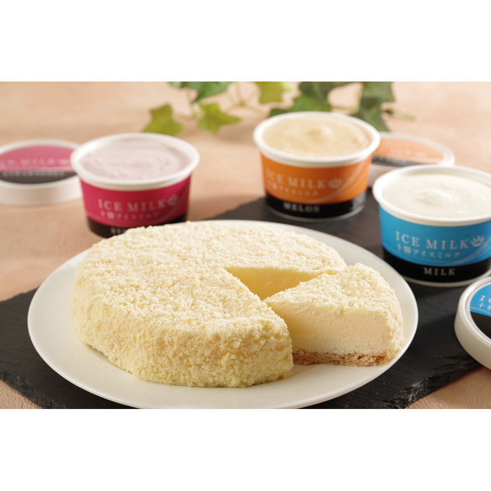 ■商品内容:ブラウンスイスフロマージュ直径11cm、アイスミルク(ミルク、メロン、ストロベリー)各80ml