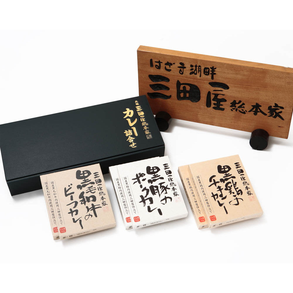 国産黒毛和牛肉をたっぷり使用した贅沢なビーフカレー、岡山県産の黒豚の旨味が味わえるポークカレー、高級食材の黒鶏を使用し、鶏肉の食感を残し旨みたっぷりに仕上げたチキンカレーの3種類を詰め合わせました。黒毛和牛・黒鶏・黒豚と肉にこだわった、三田屋総本家の贅沢なカレー詰合せセット。