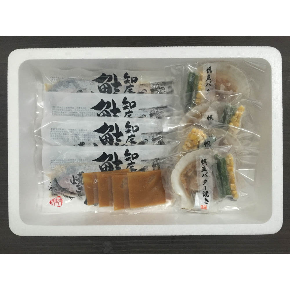 ちゃんちゃん焼きは鮭などの魚と野菜を鉄板で焼く料理で、北海道で漁師町の名物料理です。2007年に農林水産省の主催で選定された農山漁村の郷土料理百選でジンギスカン、石狩鍋と共に北海道を代表する郷土料理として選出されております。本来、外で大きな鉄板の上で大胆に焼き上げる料理ですが、いつでもご家庭で手軽に召し上がれる様、ひと手間加えた鮭の切身を特製の味噌たれに漬け込み一枚一枚を小分け真空いたしました。北海道に古くからある浜の漁師料理をご堪能ください。帆立バター焼きは、北海道産の帆立貝とグリーンアスパラガス・トウモロコシ・仕上げのバターもセットしました。食べやすいように片方の貝殻とウロを取り除き、帆立貝を手軽にお楽しみ頂けるように致しました。磯の香りとバター醤油の香ばしい風味、プリプリの食感をお楽しみください。