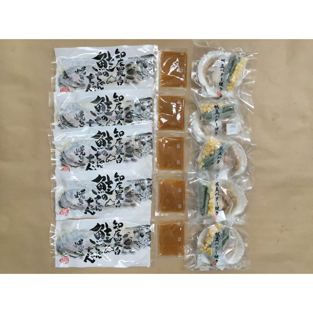 ちゃんちゃん焼きは鮭などの魚と野菜を鉄板で焼く料理で、北海道で漁師町の名物料理です。2007年に農林水産省の主催で選定された農山漁村の郷土料理百選でジンギスカン、石狩鍋と共に北海道を代表する郷土料理として選出されております。本来、外で大きな鉄板の上で大胆に焼き上げる料理ですが、いつでもご家庭で手軽に召し上がれる様、ひと手間加えた鮭の切身を特製の味噌たれに漬け込み一枚一枚を小分け真空いたしました。北海道に古くからある浜の漁師料理をご堪能ください。帆立バター焼きは、北海道産の帆立貝とグリーンアスパラガス・トウモロコシ・仕上げのバターもセットしました。食べやすいように片方の貝殻とウロを取り除き、帆立貝を手軽にお楽しみ頂けるように致しました。磯の香りとバター醤油の香ばしい風味、プリプリの食感をお楽しみください。