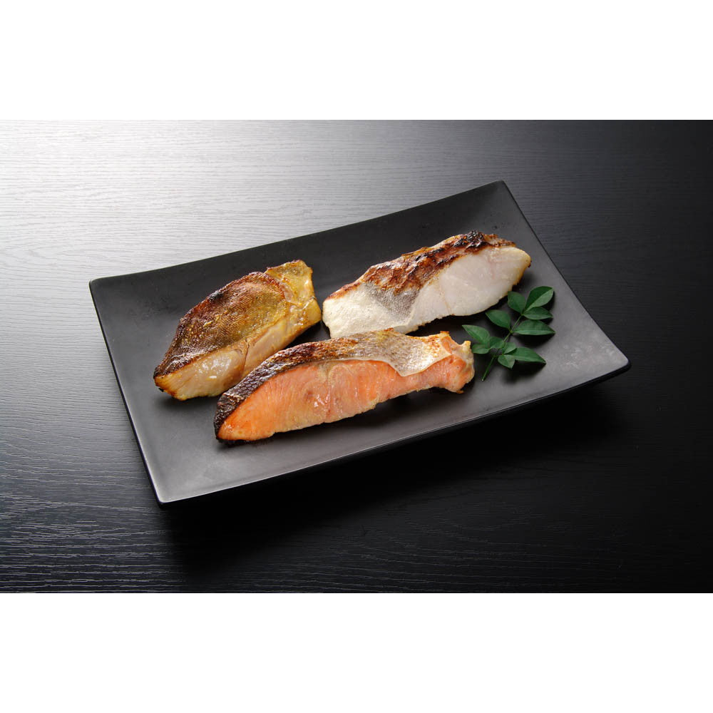 新鮮な海の幸を「粕漬け」、「西京漬け」、「甘味噌漬け」の三通りの漬け込みで仕上げました。どれも食欲をそそる一品です。