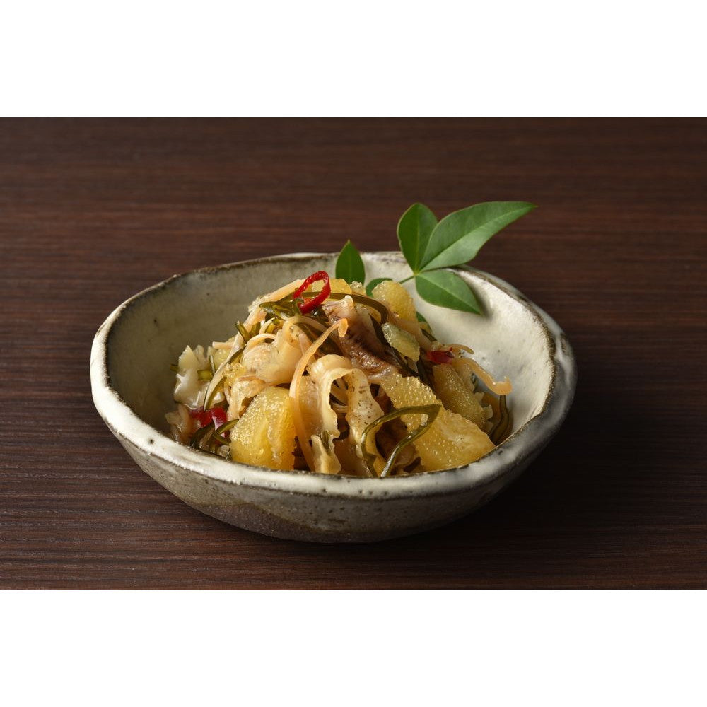 北海道の郷土料理である「松前漬け」は「するめ」と「昆布」の旨味が程よく引き出され温かいご飯にのせたり、酒の肴としても美味しくお召し上がりいただけます。本製品は素材自体の風味や色合いを活かす為、「白醤油」を使用しております。1袋130gに小分けされた松前漬けは個別真空されており、長期間の保存にも便利。お召し上がりになる分だけを解凍してからお召し上がりください。