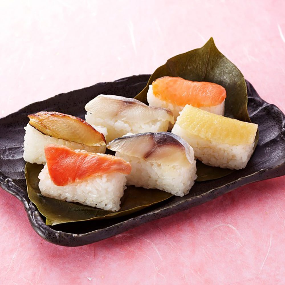 奈良に古くから伝わる柿の葉寿司を六種類の味でお楽しみください。寿司飯を美味しくするために利尻昆布を入れ炊き上げ、お酢は昔ながらの大樽でじっくり熟成させて造ったお酢を使用しています。食品の細胞を壊さず冷凍出来る「プロトン冷凍」によって、お寿しを冷凍することが可能となりました。冷凍することで保存料等余計な添加物を極力しようしないように心がけて製造しております。冷凍していることからいつでもお召し上がりいただけます。