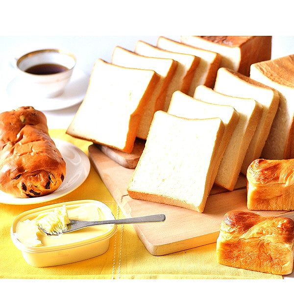 ■キメ細やかな歯ざわりと重量感が特徴で、ホテルの朝食に供される「ロイヤルブレッド」など4種類のパンに加えて、パンに合うように味を調整した「マーガリン」が入った詰め合わせです。