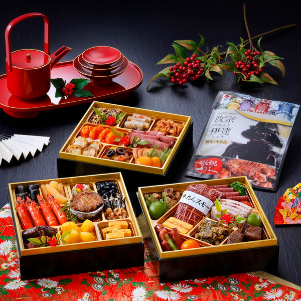 ■商品内容:【2026年おせち予約】利久 和洋中おせち 亀 三段重 37品+牛たん真空パック入(3~4人前)