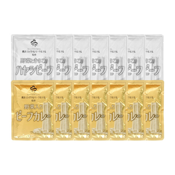 野菜入りビーフカレー200g×7、野菜ときのこのハヤシビーフ180g×7