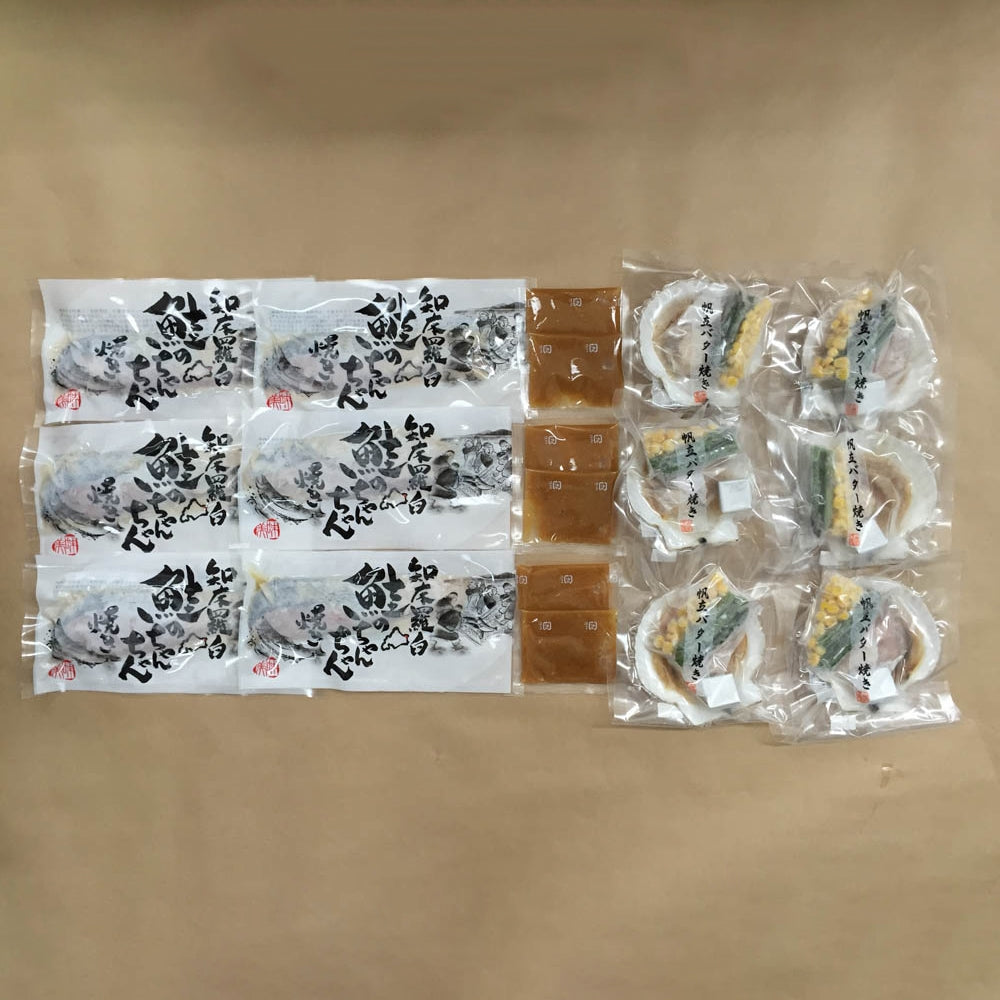 ちゃんちゃん焼きは鮭などの魚と野菜を鉄板で焼く料理で、北海道で漁師町の名物料理です。2007年に農林水産省の主催で選定された農山漁村の郷土料理百選でジンギスカン、石狩鍋と共に北海道を代表する郷土料理として選出されております。本来、外で大きな鉄板の上で大胆に焼き上げる料理ですが、いつでもご家庭で手軽に召し上がれる様、ひと手間加えた鮭の切身を特製の味噌たれに漬け込み一枚一枚を小分け真空いたしました。北海道に古くからある浜の漁師料理をご堪能ください。帆立バター焼きは、北海道産の帆立貝とグリーンアスパラガス・トウモロコシ・仕上げのバターもセットしました。食べやすいように片方の貝殻とウロを取り除き、帆立貝を手軽にお楽しみ頂けるように致しました。磯の香りとバター醤油の香ばしい風味、プリプリの食感をお楽しみください。