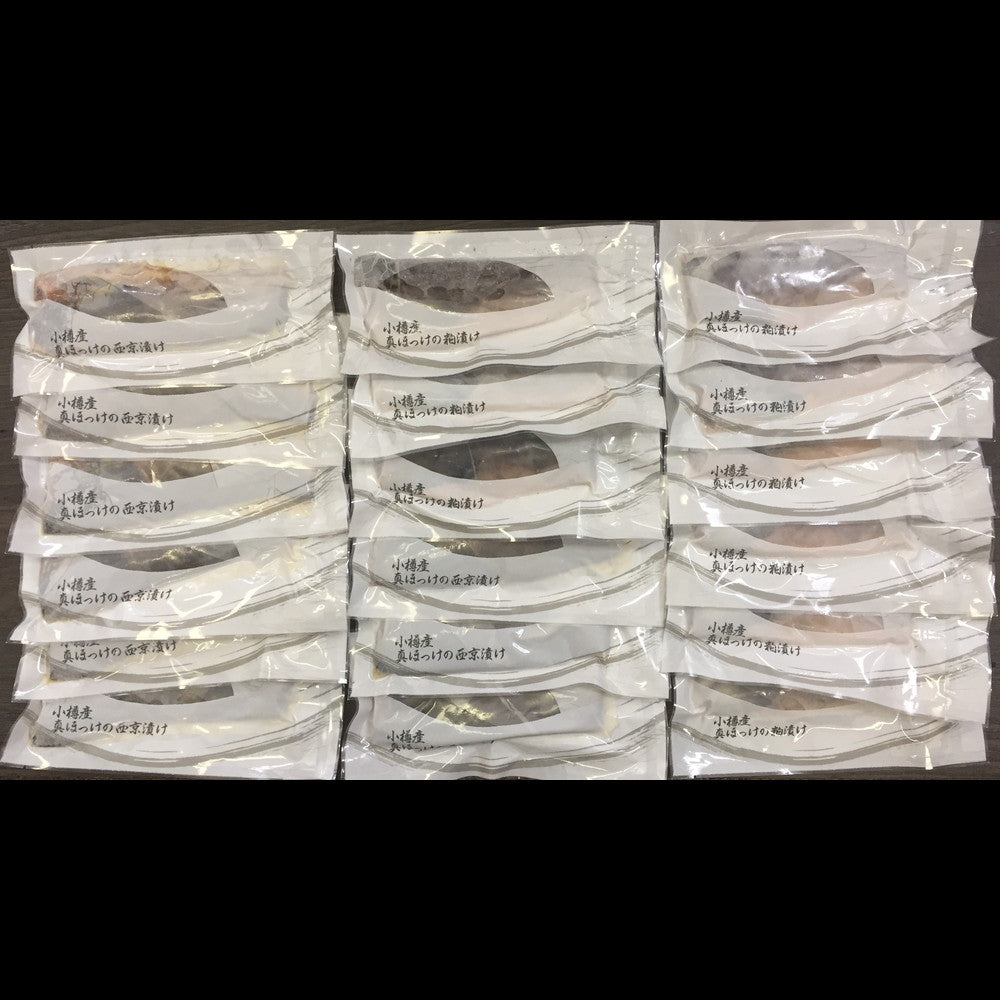 ■商品内容:北海道 小樽産 ほっけ西京漬・粕漬詰合せ真ほっけ西京漬け120g×9枚、真ほっけ粕漬け120g×9枚