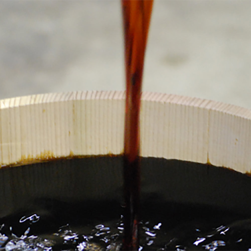 原料を贅沢に使用し二度仕込みじっくりと発酵熟成させた濃厚な二段熟成(再仕込み)醤油は、 『甘露醤油』とも呼ばれており濃厚で旨みと甘みが際立つ刺身にとても相性のいい醤油です。