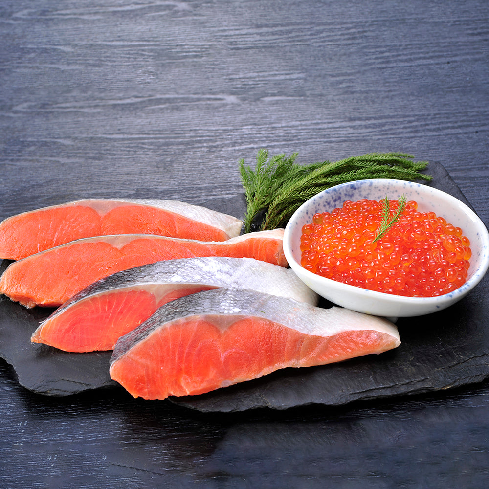 北海道産の鮭の卵を、特製醤油(はぼまい昆布醤油タレ)に漬け込み、風味豊かに仕上げた『いくら』とのセットとなります。