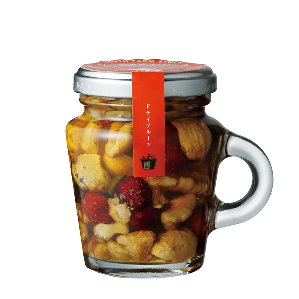「一匹のミツバチが一生をかけて集める蜜の量はわずかティースプーン一杯」 香ばしいローストナッツと甘酸っぱいドライフルーツを香り高い北海道産はちみつに漬け込みました。 ローストナッツと一緒に、クランベリー、丁寧にハンドカットしたホールいちじくを使用。 ドライフルーツの酸味が加わることでマスカルポーネなどのチーズやヨーグルトとの相性をよりお楽しみいただけます。