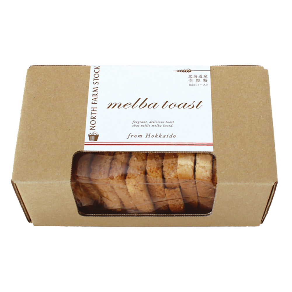 メルバトーストとは、オーストラリアのオペラ歌手、ネリーメルバが愛した、香ばしくて美味しいトースト。 薄くスライスしたパンをカリカリに焼いたトーストは、 カロリーが低くとてもヘルシーで、ダイエット食としても人気があります。 北海道産小麦・全粒粉を使用したメルバトーストは、素材本来のシンプルな味わいが特徴です。 ディップやジャム、チーズとの相性もよく、おつまみや軽食としてもお楽しみいただけます。