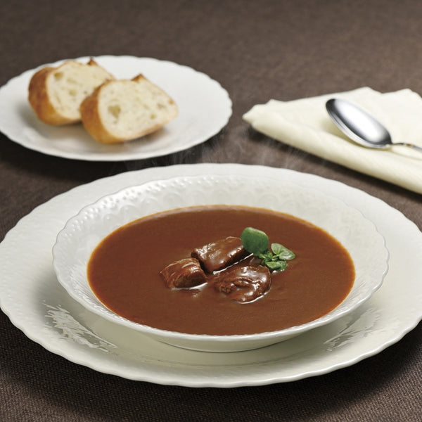 ■具材には黒毛和牛と淡路島玉葱を使用。温めるだけで手軽にシェフの味がお楽しみいただけます。マイルドな味わいのデミグラスソースは、お子様から幅広い年齢の方におすすめ。温野菜やショートパスタ等を添えて、特別な日の華やかな食卓の1品にもどうぞ。
