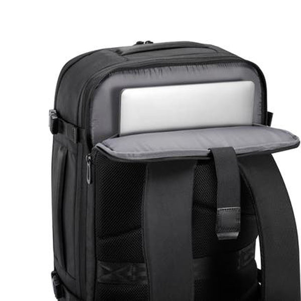 こちらのコンパートメントはクッション材に囲まれており、PCを衝撃などから守ります。また、コンパートメントの大きさはVACUPACKと同じくらいなので、16インチパソコンでもすっぽりと入ります。