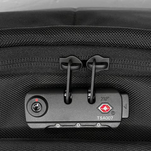 ■PCと衣類を分けて収納。TSAロック付きで盗難対策も万全。